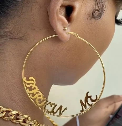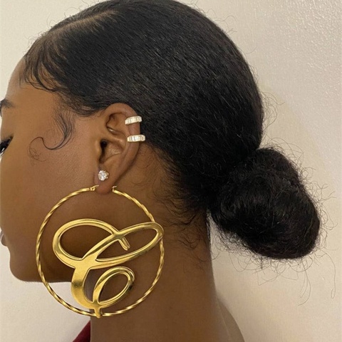 New Design Custom Name Personalized Earrings Jewelry Stainless Steel Letters Large Hoop Letters Labeled Earrings Wholesale