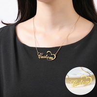Personalized Name Stainless Steel Gold Plated Pendant Necklace with Heart-shaped Custom Font Link Chain-a Gift of Name Jewelry
