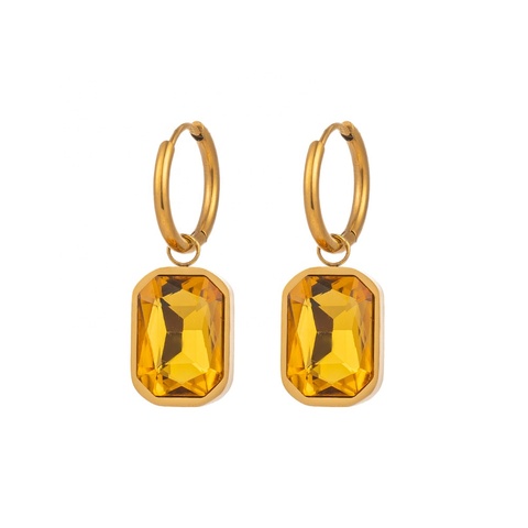 New Style Fashion Luxury Jewelry Waterproof 18K Gold Plated Stainless Steel Colorful Square Shiny Zircon Drop Earrings for Women