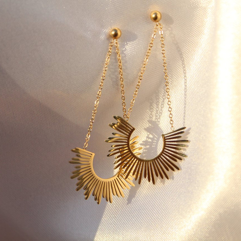 Custom Wholesale Personalized Stainless Steel Gold Plated Fan Dangle Large Earring Drop Pendant Earring for Women