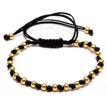 สร้อยข้อมือลูกปัดสแตนเลสผูกปม18K,สร้อยข้อมือทำด้วยมือเชือกสีดำสร้อยข้อมือมิตรภาพถักด้วยมือ