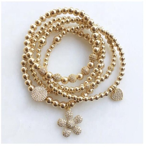 สร้อยข้อมือลูกปัดลูกกลมสีทองขนาดเล็ก4มม.,สร้อยข้อมือประดับเพชรสวิสรูปหัวใจทำจากสเตนเลสสตีลละเอียดอ่อน
